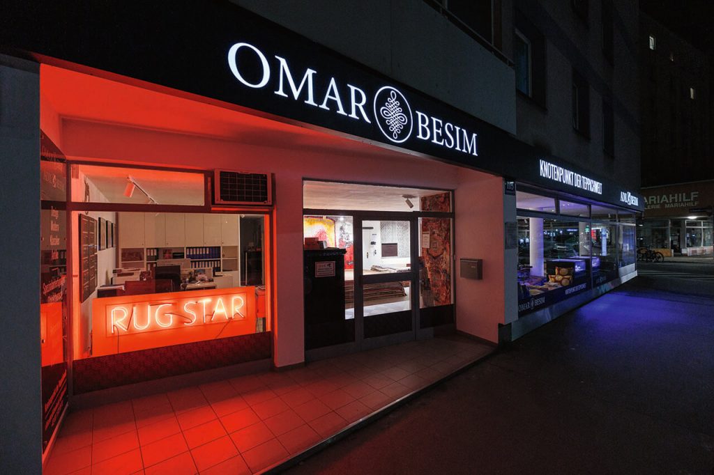 Adil Besim founded a small carpet shop in 1946 on Naglergasse in the heart of Vienna. Through dedicated development work with many exhibitions, trade fairs, and activities throughout Austria, the company rose to become an industry leader and trendsetter in the field of fine carpets. His grandson, Omar Besim, now continues the company into its third generation. Today, the specialty store is located on Vienna’s furniture mile at Gumpendorfer Straße 115, in the 6th district. The sales area includes a selected assortment of modern and historical pieces. More than 2,000 carpets and kilims are available for selection. Besim has also long made a name for itself in the field of projects for hotels and offices.
