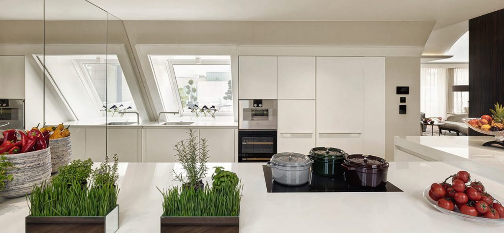 Auf zwei Etagen, die sich über insgesamt 820 m² erstrecken, verbindet sich moderner Luxus mit einer gelungenen Mischung aus Eleganz, Tradition und Moderne. Vier Terrassen bieten einen atemberaubenden Panoramablick über die Wiener Innenstadt bis hin zu den Wiener Weinbergen, den Sie in bester Laune mit Freunden und Familie genießen können.