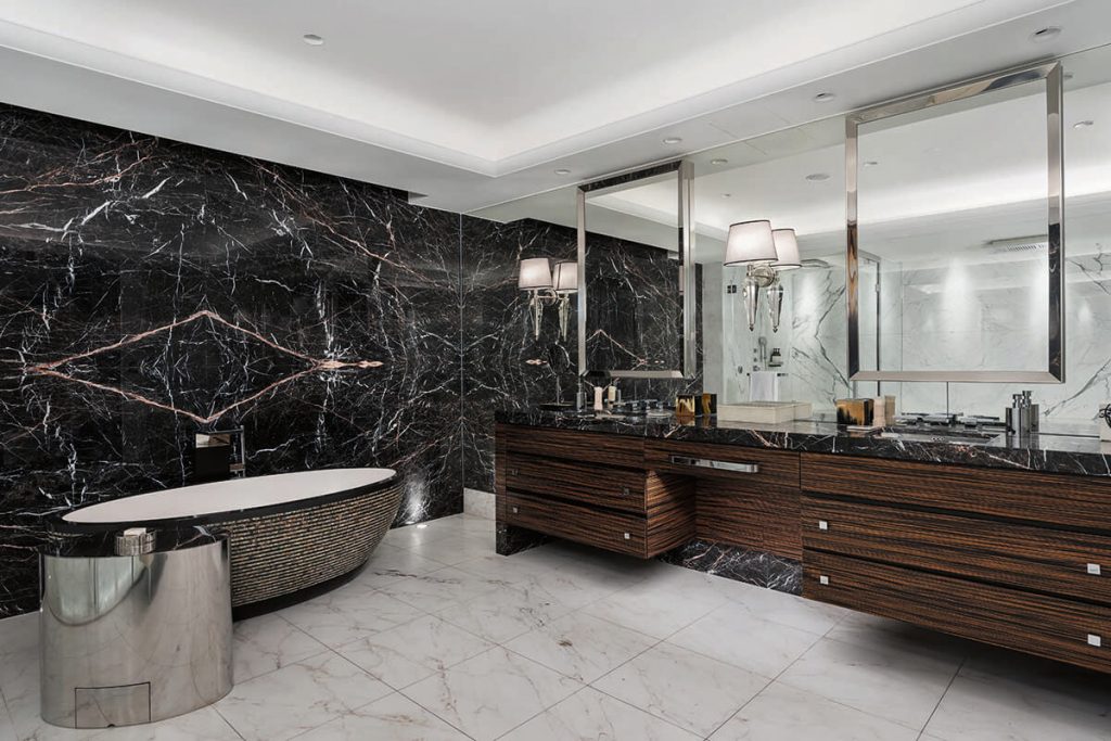 Eleganter Marmor und alle luxuriösen Sinnesfreuden, die ein Bad bieten kann.
