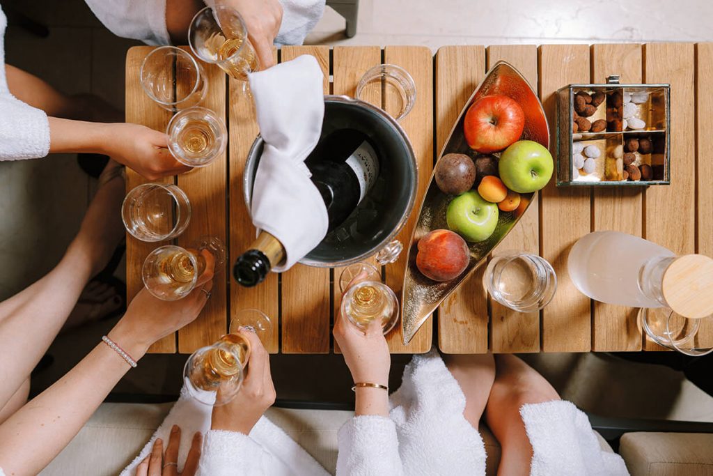 4 Stunden exklusive Nutzung der Spa Lounge Zwei Flaschen Champagner & frisches Obst