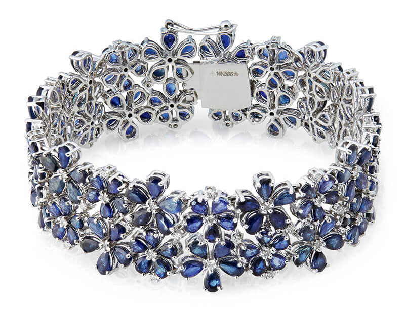 Tiefblau: Armband aus 585f weiß Gold, mit 41,8 Karat Tansaniten und 1,65 Karat Diamanten