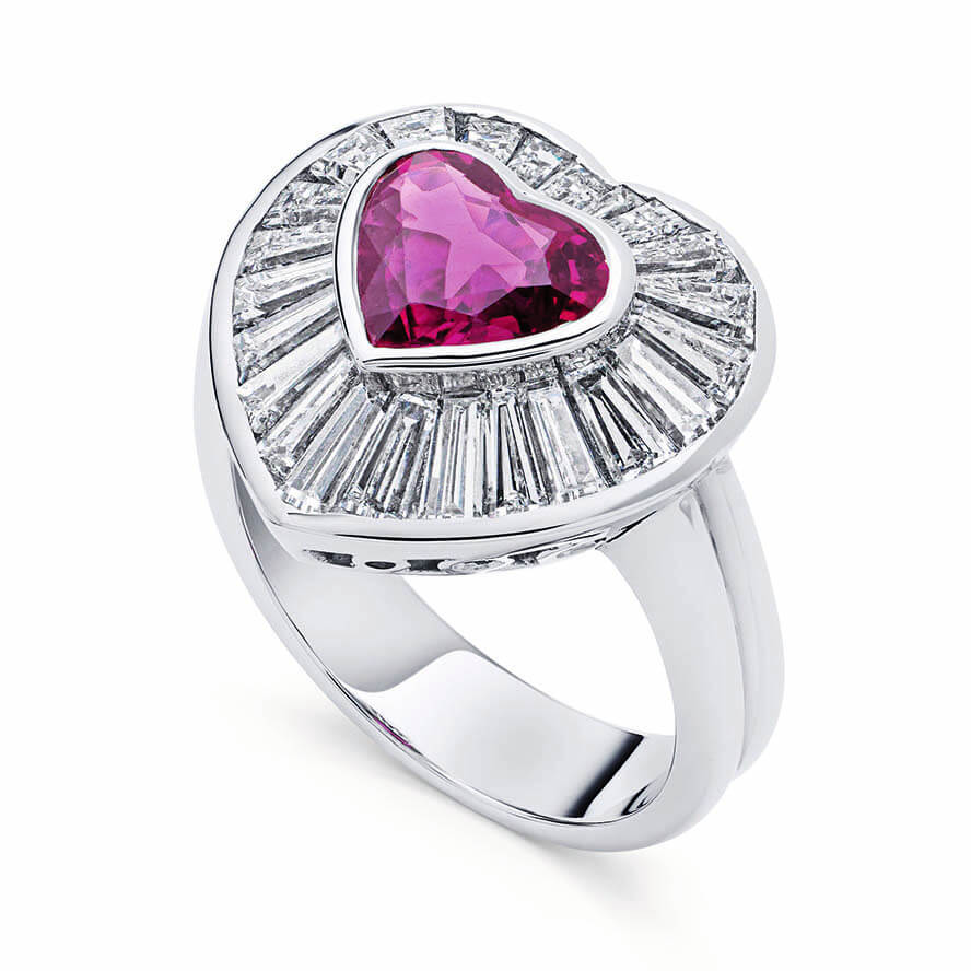 Von Herz zu Herz: Ring aus 750f Weißgold mit ca. 2,90 ct Baguetteschliff